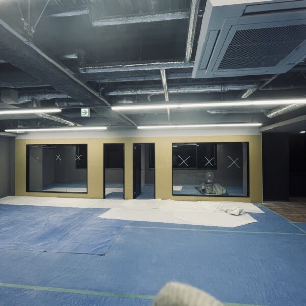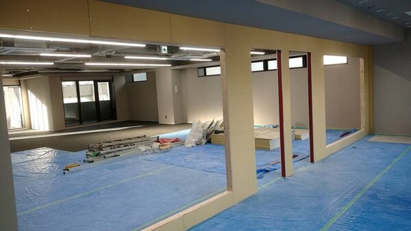 今回は日本橋のオフィスにて、壁の下地ボード貼り、サッシの取付けをいたしました。